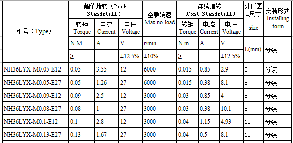 NH36LYX series dc torque motor performance parameters